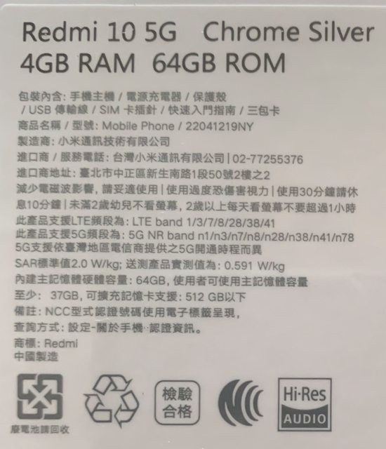 標題[賣/高雄/面交] 紅米 Redmi 10 5G 彩光銀 (已售出)
