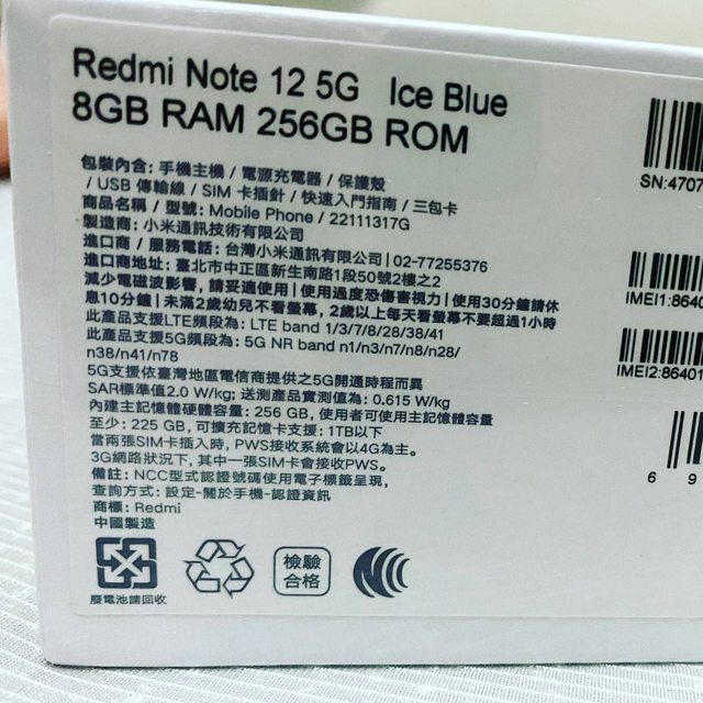 標題[賣/全國/皆可]紅米Redmi Note12 8G/256G 冰河藍