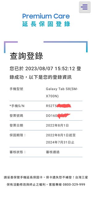 此平板還在保固內,請參考第三張圖。
