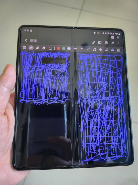 裝殼摔過一次,轉軸有傷,內外螢幕、邊框都沒事,最近突然想寫東西發現spen書寫問題(如圖),故便宜出售,觸控都正常,不議價,謝謝