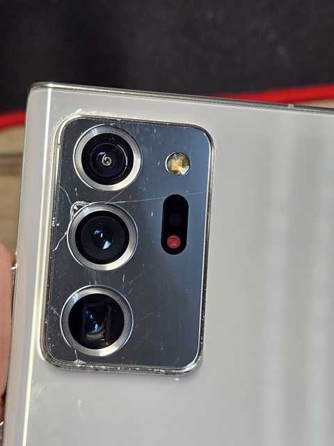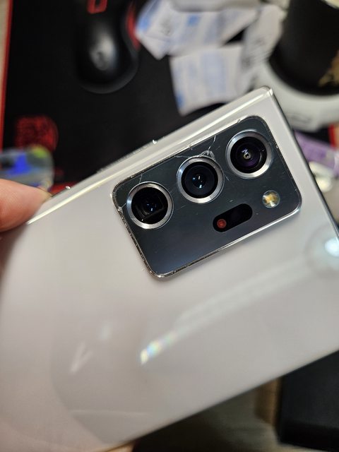 物品狀況:日常使用小刮痕、後鏡頭玻璃裂損(如圖)、前螢幕左上角裂損痕跡(如圖)