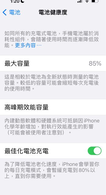 電池 85%