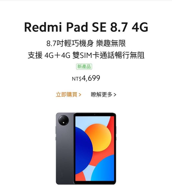標題[賣/台中/面交] redmi pad se 8.7 4G版