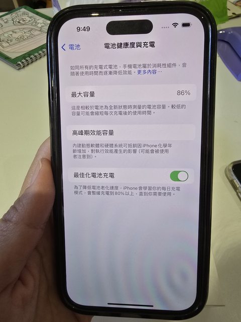 物品狀況:正常使用痕跡,電池86%,無維修紀錄,有銀幕保護貼與鏡頭貼
