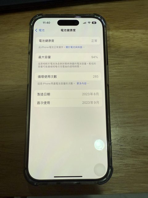 物品狀況:沒換過電池,電池健康度94%,充電循環 285 次