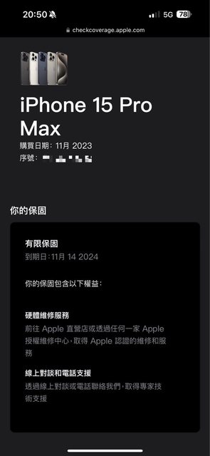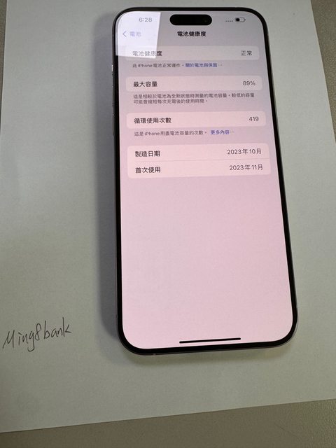 物品狀況:電池89%,循環使用次數419,保固至11/14