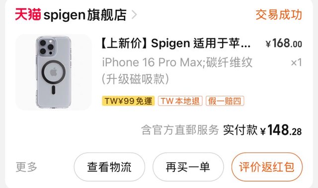 欲售物品: iPhone 16 pro max spigen 磁吸殼(碳纖維圖案)