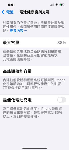 電池健康度88%,不曾換電池