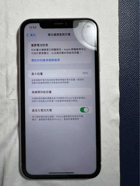 1. 電池健康度75%,側邊有一小刮痕,背板因犀牛盾保護殼有一些使用痕跡
