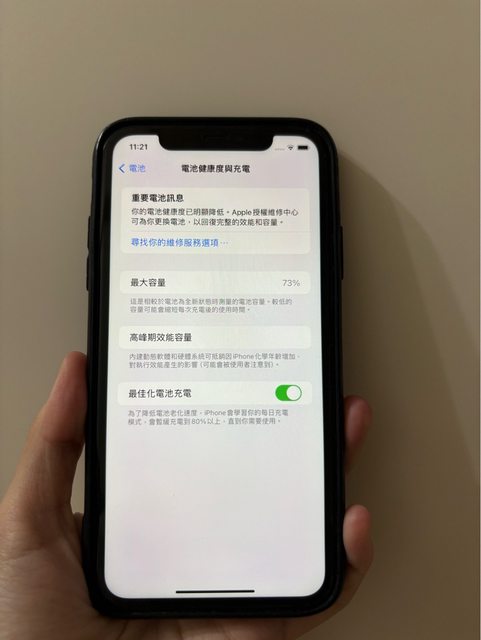 物品狀況:電池健康度73%,正面螢幕無刮傷,背面手電筒稍微刮傷