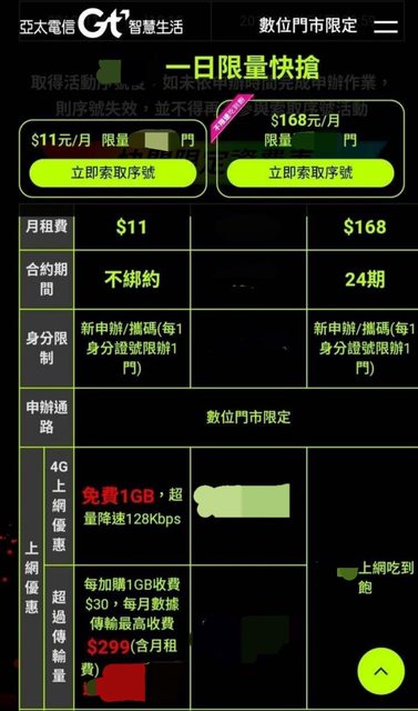 2.「加價上限$899-可用到4G停用-終身合約」(第一波亞太11才有)