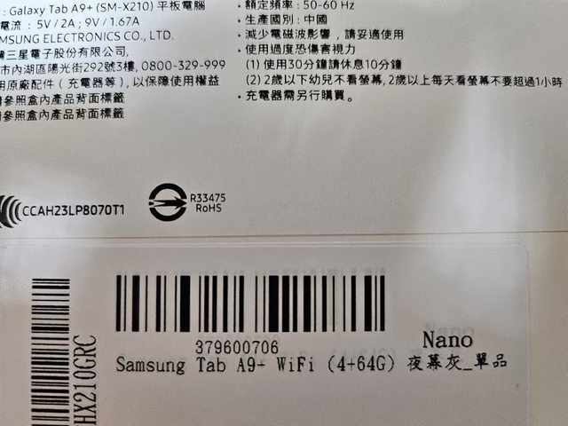 標題[賣/新竹/面交] Samsung Tab A9+ 4G/64G 灰wifi