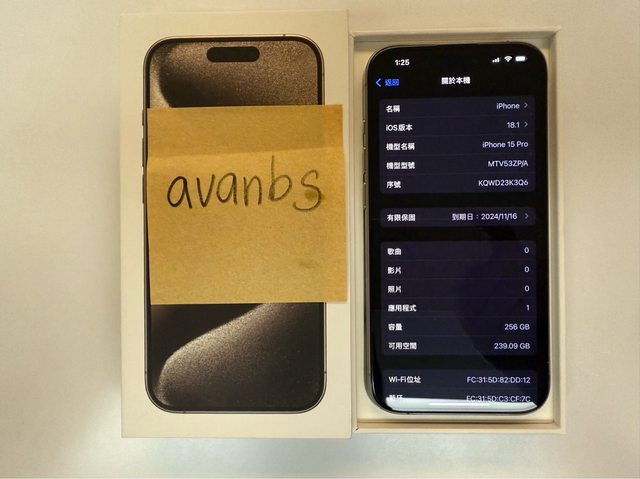 欲售物品:iPhone 15 Pro 256GB 原鈦色