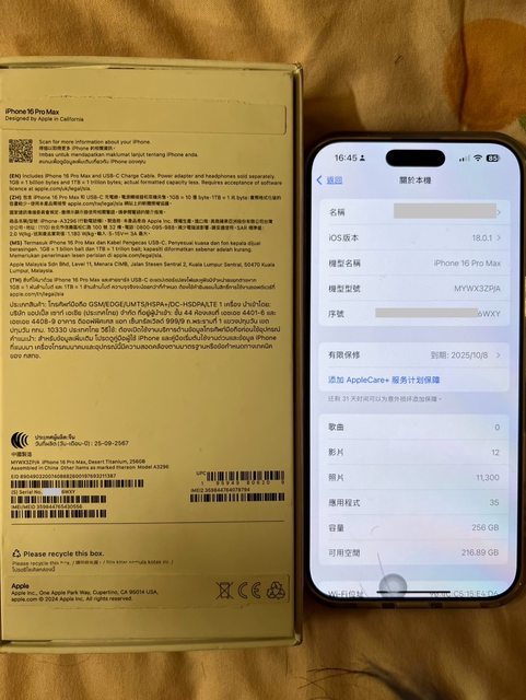 欲售物品:iPhone 16 pro max 256G 沙漠金