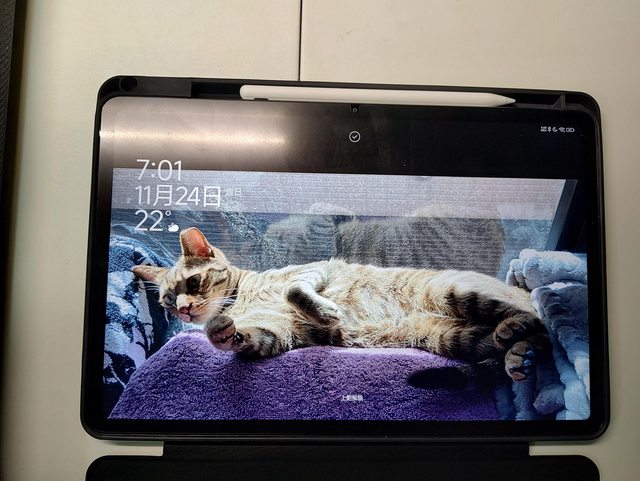 盒裝內含:充電頭/傳輸線/退卡針,還有一隻另外買的觸控筆,螢幕有貼一張霧面保護貼