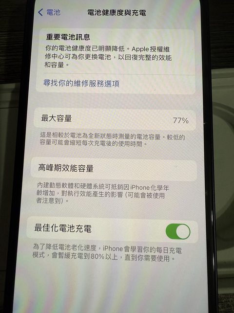物品狀況:有貼保護貼、電池健康度77%、功能皆正常、外觀有輕微刮痕