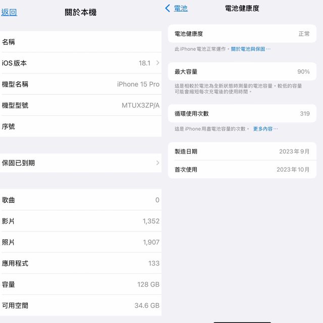 物品狀況:電池健康度90%、左上角刮傷