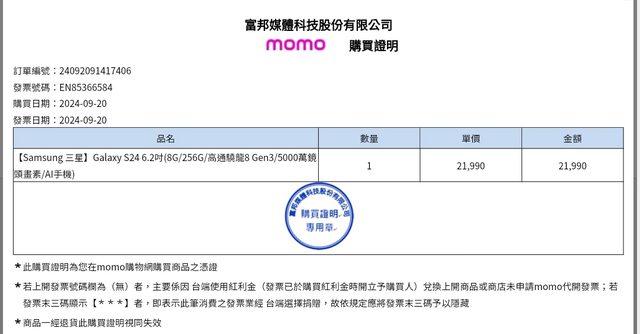 購買日期:2024年09月20日