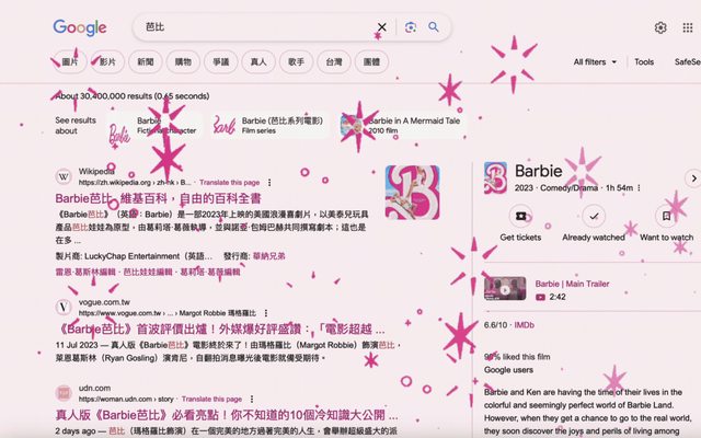 標題[新聞] Google為真人版芭比電影造勢 輸入關鍵字將