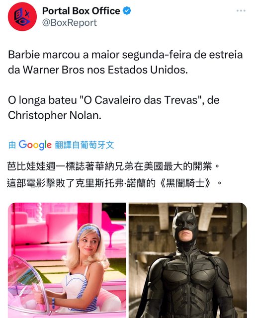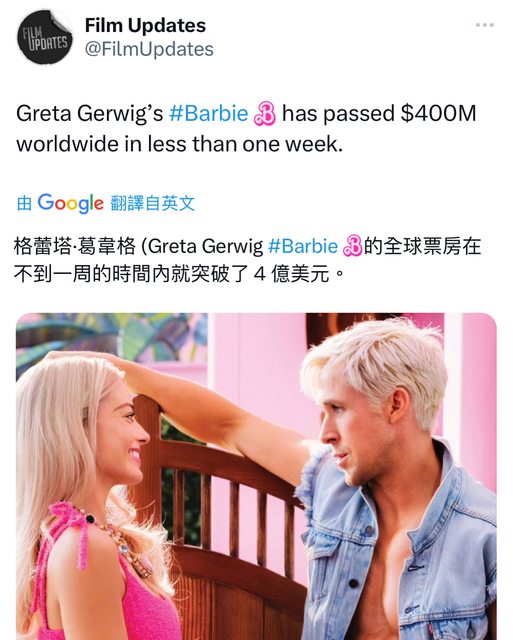 推 speed2 : 芭比全台票房一直漲 真的有機會逆襲奪冠 07/26 17:58