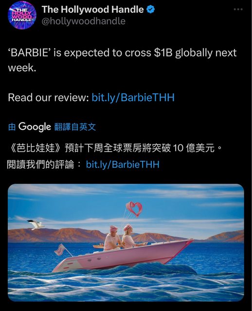 → n0029480300 : 再次恭喜芭比和奧本海默取得好票房 07/29 23:15