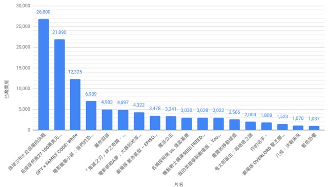 其中3部破億票房,分別位居台灣日本動畫票房史第3、7、12名,
