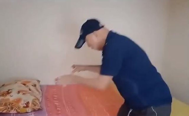 企圖性侵,他當場在床上將老婦人的上衣脫掉,隨後襲胸強吻,被害人不斷推開男子,一