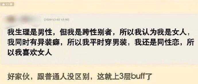 噓 NCTUkober: 紅明顯 這位buff上很多 變性過又結婚又什麼的 很混亂 11/17 14:19