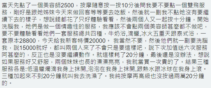 推 saladin1029: 不小心進到剝皮店只花3000算好了,花2萬多連老二都沒 04/10 14:35