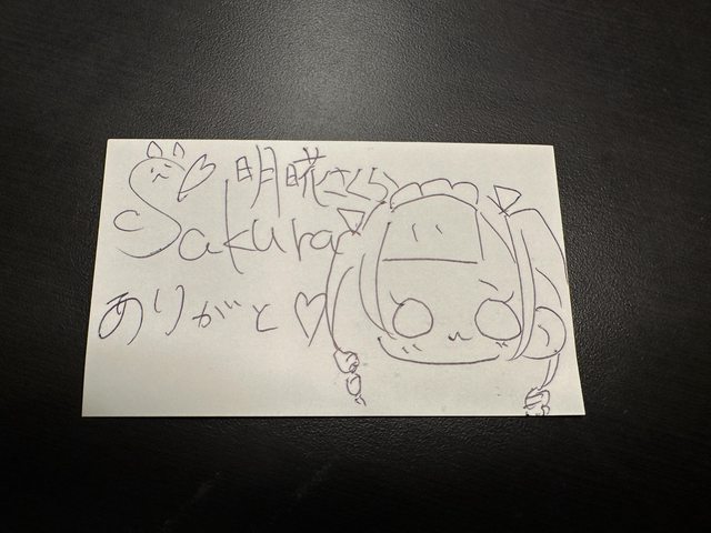 S醬給了我一張店裡的名片並在背後畫了很可愛的圖和寫字