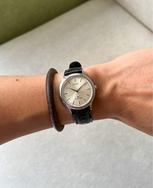 1. 初代Grand Seiko 雙標老石英,約1990年生產採用9581機芯,9581機芯是GS在1988年