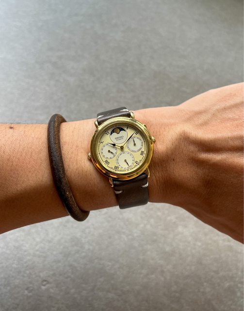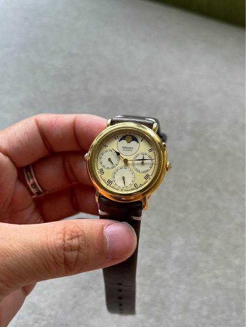 3.Seiko 月相老石英,有月相、星期、日期、兩地時間功能,約1999年生產,已更換鏡面