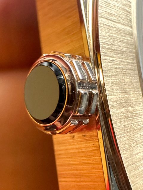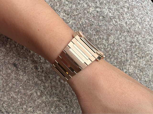 超寬的Lug width 30mm 又是全玫瑰金,讓整支戴在手上非常醒目,但因爲超薄的關係,