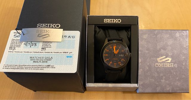 品牌名稱:Seiko 手錶型號:SRPH33 39.4mm 欲售金額:6000元(不含運) 隨附物件:原廠錶盒、保卡 物件狀態:9成9新 交易方式/地點:台中面交或雙方討論其他交易方式。 聯絡方式:站內信 補充說明:2023/04/07 Amazon 購買,全球保固一年。
