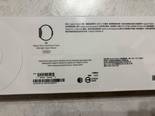 1.品牌名稱:Apple Watch SE (第一代)GPS版