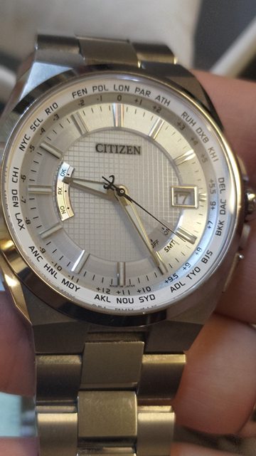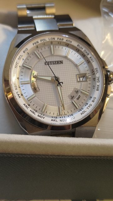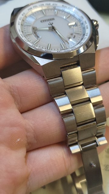 2.日本限定版鈦合金,藍寶石鏡面無傷、簡單的大三針,白色顯眼配上電波秒針,使用狀