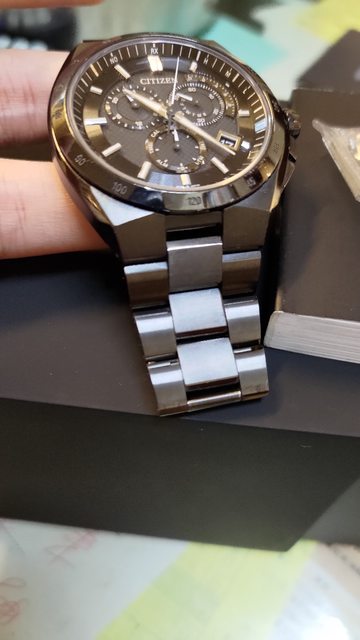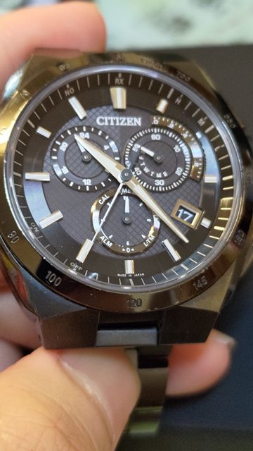 1.Citizen 光動能黑鈦金屬三眼電波錶