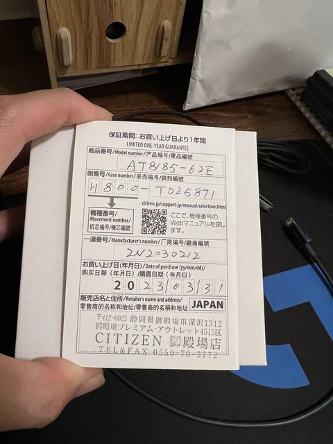 手錶品牌:Citizen 手錶型號:AT8185-62E 保卡年份:2023/03 購買店家:日本專櫃 販售金額:20000 所在地區:台北 隨附配件:盒子、錶節、袋子、購買證明、保卡
