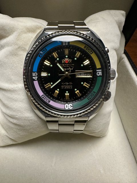 品牌名稱:Orient star(錶徑41MM) 欲售金額 : 3,000元 物品所在地:新北市 聯絡方式:站內信 交易方式:店到店 物品描述:錶帶有使用痕跡,鏡面有一條刮痕,附錶盒