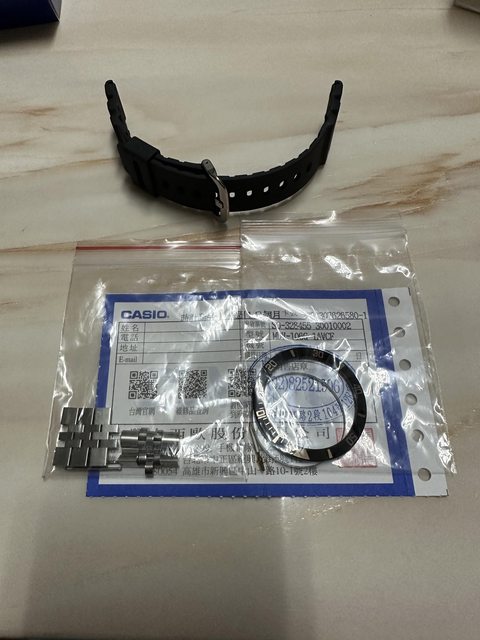 隨附物件:原廠盒、說明書、保固單、原廠膠帶、原廠鋁圈、原廠玻璃鏡面、改鋼帶多餘錶