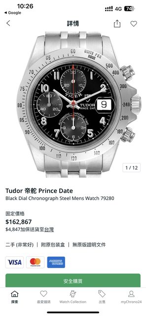標題[賣錶] 帝舵 Tiger Prince Date 79280 計時碼表