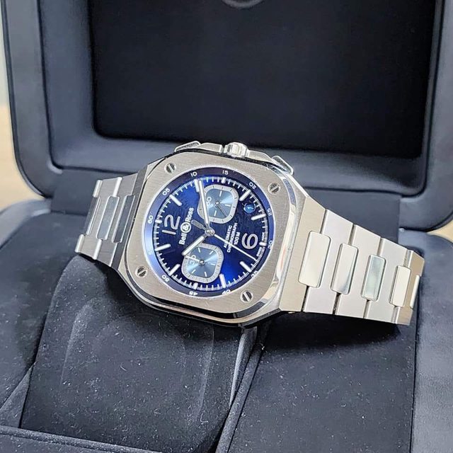 【售】: BELL&ROSS 柏萊士 BR 05系列 放射藍面錶盤 計時碼錶功能 日期窗 自動上鍊機