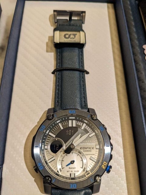 品牌名稱:【CASIO 卡西歐】EDIFICE Scuderia AlphaTauri 限量版海軍藍漸層藍芽智慧
