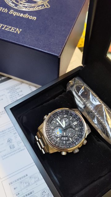 1.日本空軍自衛隊紀念款,台灣沒有進,電波對時,整體鈦合金,計時、鬧鈴、萬年曆功