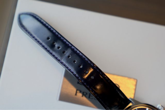 >櫻吹雪皮錶帶幾乎沒有使用連標籤都還沒拆掉,但放一段時間仍有些許痕跡,無摺痕,