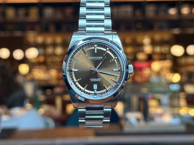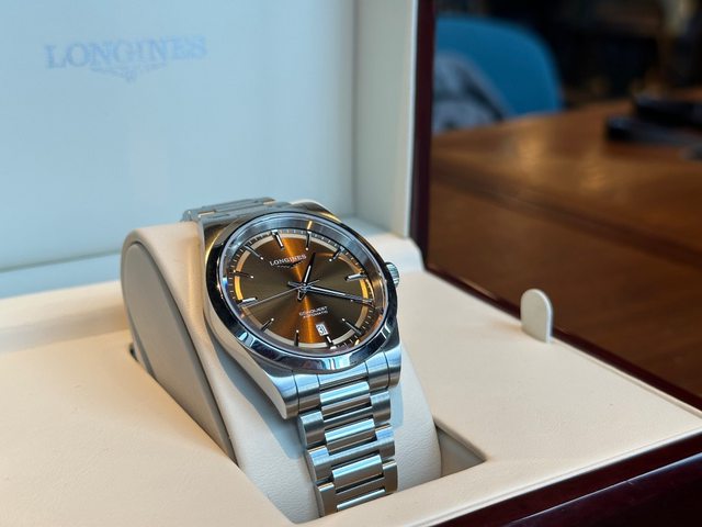 我印象中,好像咖啡棕色的錶盤還蠻少見的,而且Conquest的顯色在我的穿著上也很好搭