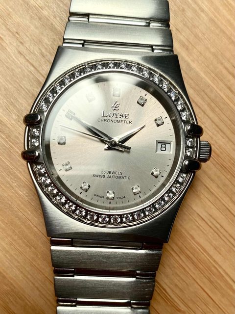 商品:浪琴18k半金珍珠面真鑽機械錶