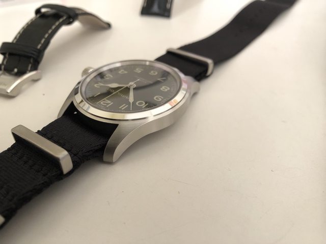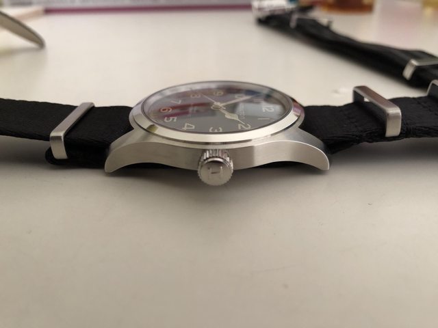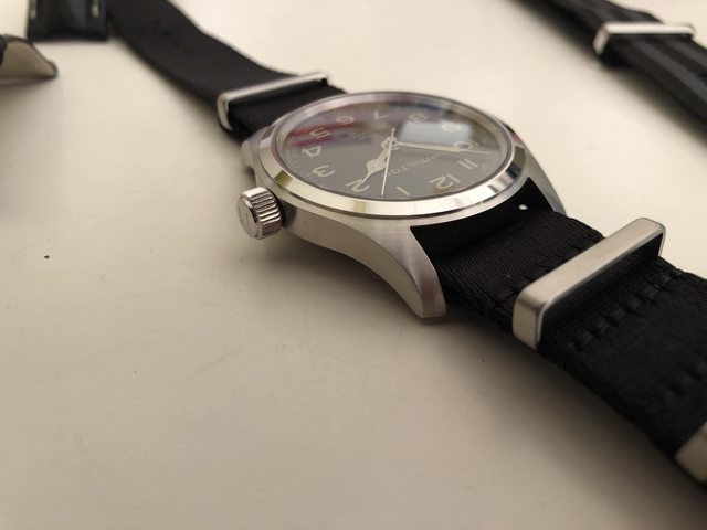 今年8月10日購入 盒單保卡皆在 錶徑對我來說太寬只好忍痛脫手 買來帶著5次後就換上NATO錶帶 隨附兩條NATO 錶帶 龐德色的是 Phenome NATO 售20000
