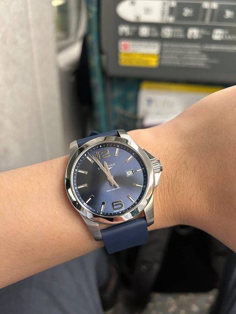 手錶型號:conquest石英 43mm 藍面
