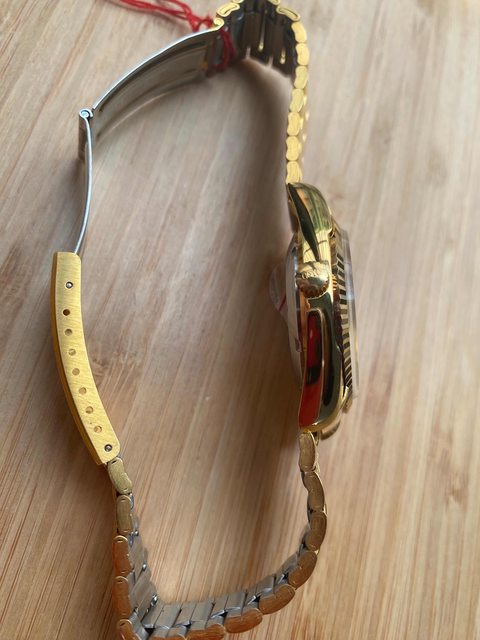 拉)與夜光大劍針,搭配18k玫瑰金外圈與半金鋼帶
